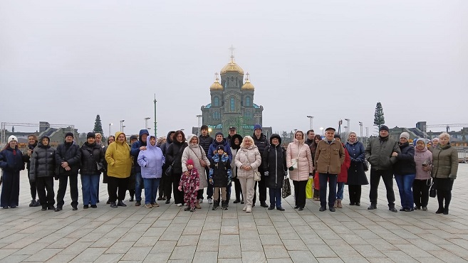 Также посетили Главный Храм Вооружённых Сил РФ Патриарший собор Воскресения Христова. Храм был построен в честь 75- летия Победы в ВОВ.