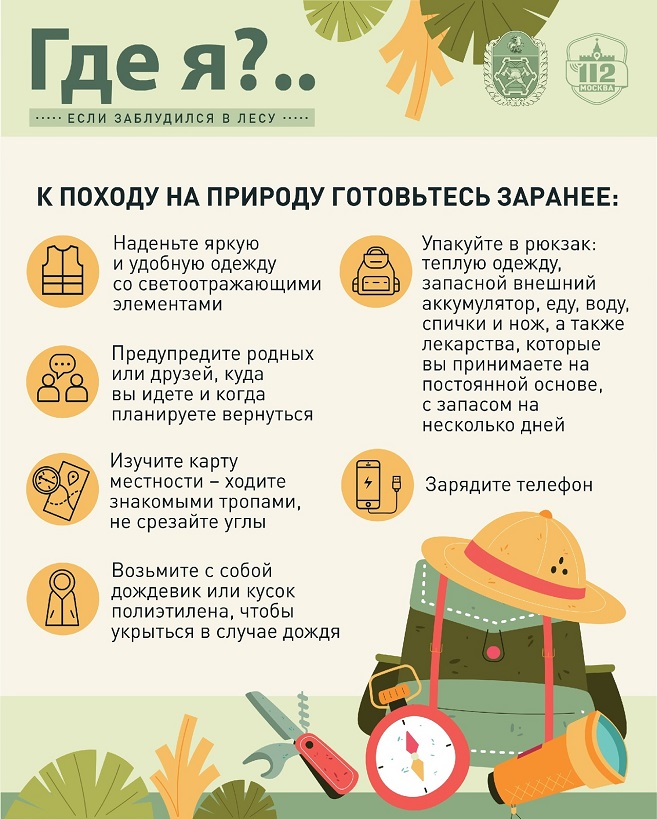 Спасатели Юго-Восточного округа столицы рекомендуют перед тем, как отправиться в лес, обязательно предупредить родных или друзей о том, куда вы собираетесь ехать или идти. Одеться лучше всего в яркую одежду и по погоде. Обязательно возьмите с собой заряженный мобильный телефон и наденьте на шею свисток. Будьте внимательны – идя по лесу, следите за тем, чтобы не уходить далеко от проверенного маршрута.