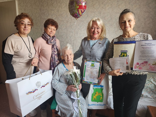 Сегодня глава муниципального округа Выхино-Жулебино Нина Васильевна Калькова вместе с представителями Совета ветеранов района поздравили с замечательным юбилеем — 100-летием — Коркину Татьяну Михайловну!