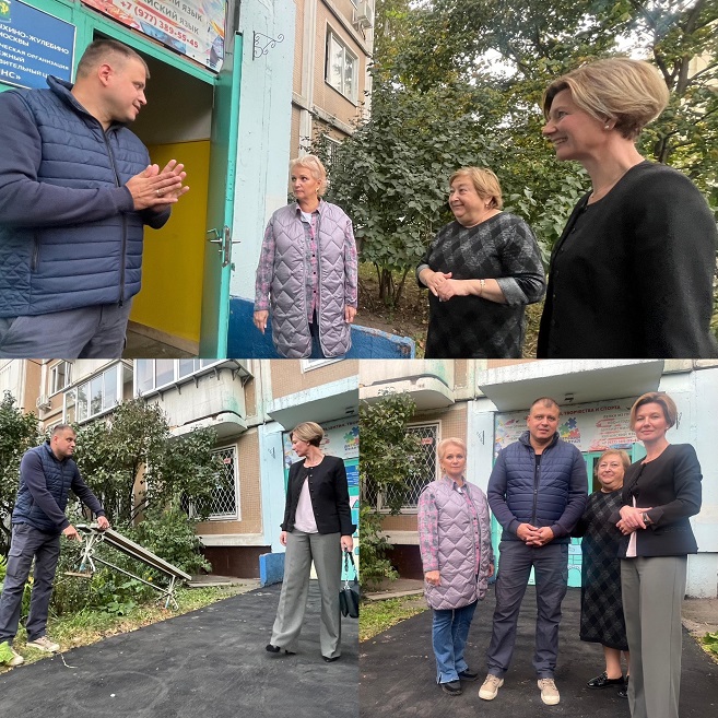 Совместно с депутатами Макаровой О., Сокольникас В., Новиковой Г. и Орловой Е. выехали на место, чтобы лично оценить ситуацию. Зафиксировали основные проблемные зоны: требуется замена асфальтового покрытия, установка новых лавочек и урн, а также благоустройство и очистка территории вблизи входной группы.