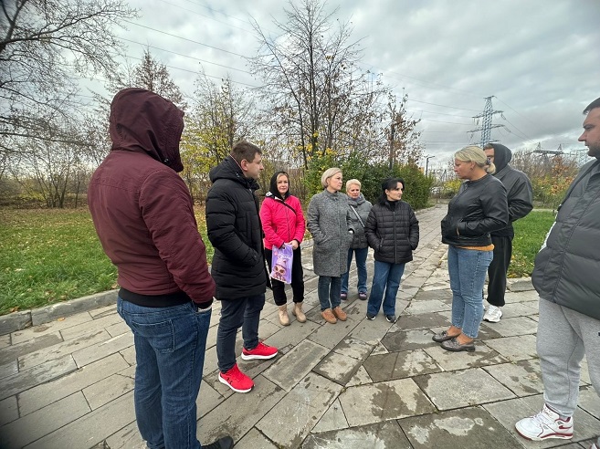 Ссовместно с главой Управы района Выхино-Жулебино города Москвы Орешкиным Н.А, первым заместителем главы управы Мережко О.В., заместителем главы управы Холоня Ю.В., молодёжной палатой района Выхино-Жулебино , и.о директора ГБУ "Жилищника района Выхино-Жулебино" Ципляковым Я.С. , а так же с активными жителямипрошли по маршруту: