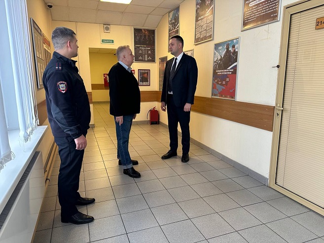 Во время визита в районный Отдел полиции общественника встретил временно исполняющий обязанности начальника ОМВД России по району Капотня полковник полиции Сергей Канделаки. Валерий Борисов начал с проверки информационных стендов, акцентируя внимание на актуальности представленной информации. Он тщательно изучил графики приема граждан руководящим составом отдела, перечень необходимых нормативных актов, а также данные о государственных услугах, предоставляемых полицией населению.