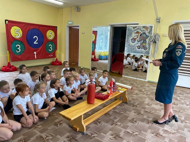 Занятие было построено в доступной для дошкольников игровой форме. В ходе интерактивной игры ребята учились отличать безопасные действия от опасных. Сотрудник МЧС России загадывала тематические загадки и наглядно демонстрировала, как можно потушить условное возгорание с помощью подручных средств – воды, песка и плотной ткани.