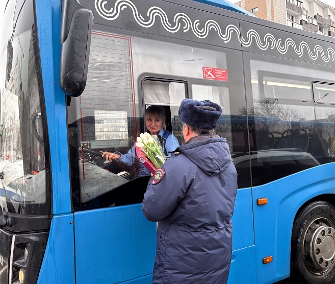 На одном из оживлённых участков дорожной сети округа инспекторы ДПС останавливали автомобили, за рулём которых находились представительницы прекрасного пола, и вместо стандартной проверки документов полицейские вручали автоледи и цветы и сладкие подарки, сопровождая их добрыми пожеланиями в преддверии самого нежного весеннего праздника.