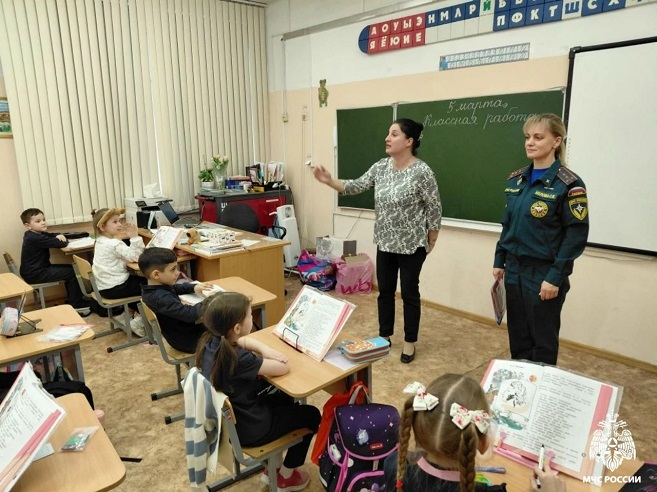 Старший инспектор 1 ТОНПР по ЮВАО УНПР ГУ МЧС России по г.Москве Светлана Белова провела урок в школе № 1793 имени Героя Советского Союза А.К. Новикова района Выхино-Жулебино.